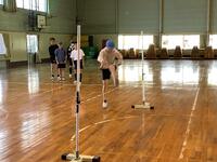 6年生の体育の授業の様子です。走り高跳びの練習に取り組み始めました。まずは、はさみ跳びのフォームの確認をしていきます。通常のバーを使わずに、ゴム紐を用いたところからのスタートです。ペアを決めて互いに跳び方のアドバイスをしていきます。これから練習を重ねてより高く跳べるようになるのが楽しみですね。