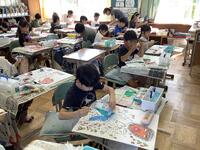 6年生、図画工作の様子です。6年生は小学校生活もあと半年ほど。思い出作りの一環として、ランドセルを描いていました。構図を決めて使って描き始めます。