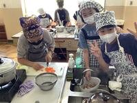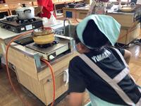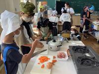 5年生、家庭科の様子です。11月に実施する自然教室に向けて、カレー作りに挑戦です。米をといで、野菜を切って、班で協力しながら調理していきます。