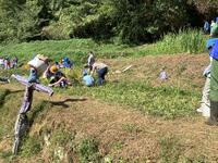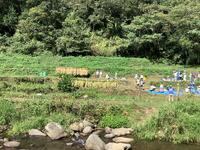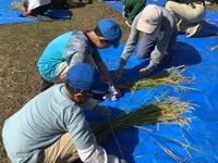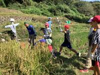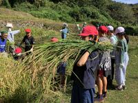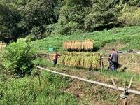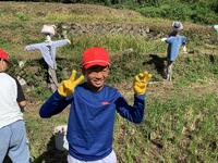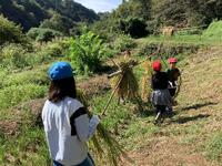 田んぼの稲がなくなるまで、何度も「刈って、束ねて、干す」作業の繰り返しです。みんな、頑張れ!!!