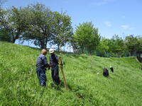 5月20日(土)に、本校校庭の外側、南側の斜面(法面)に、桜の苗木を10本植樹しました。御協力いただいたのは、川井林業さんです。数年後、数十年後の景観を考え、南側から本校を見上げたとき、素敵な桜の花々が目に入るようにと植樹してくださいました。日当たりよく風通しもよいこの傾斜地で、桜の苗木がのびのびと大きく育ち、美しい花をたくさん咲かせてくれる日が楽しみです。