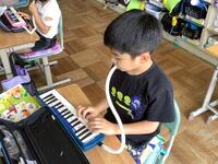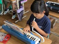 2年生の音楽の授業の様子です。ちょうど「ドレミのうた」を歌ったり、鍵盤ハーモニカで演奏したりしているところでした。鍵盤ハーモニカでは、うたのドレミに合わせて、音を出していきます。みんなうまく鍵盤ハーモニカで音を合わせることができました。