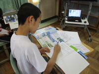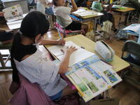 5年生の社会科の授業では、日本の国土の様子について学習しています。子供たちは地図帳や資料集などを参考に、日本の山地や川、平野について調べてきました。「日本って、川も山も多いよね。」「島もいっぱいあるね。」「平野が少ないってこと?」「自然がいっぱいある国ってことなんじゃない?」など、今日はこれまでの調べ学習の内容を生かし、国土の特徴についてまとめていきました。