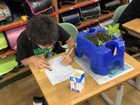 3年生の理科の授業の様子です。ホウセンカの観察を行っていました。まずは、成長してきたホウセンカの観察です。ホウセンカの高さや葉の大きさなどを定規で測り、記録していきます。絵でもホウセンカの状態を記録しました。併せて、育てていくホウセンカを決め、間引きをしました。間引いたホウセンカは、牛乳パックに入れて持ち帰ります。