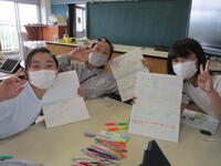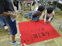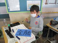 6年生の子供たちが、小学校最後の運動会に向けての意気込みや決意を表す言葉をカードに書き込んでいました。「全力」「自分を超える」「笑顔で協力」「絆」等、6年生らしい言葉が並んでいます。学級旗の制作も進められ、当日に向けてますますやる気が高まっています。運動会当日は、これらの旗やカードにも是非注目してください。