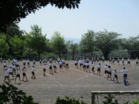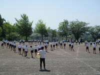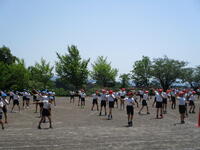 56年生の団体演技の合同練習の様子です。今日は校庭で、ソーラン節の隊形移動のタイミングや自分の位置を確認する練習を行いました。ソーラン節は一人一人の力強い踊りと共に集団による動きの美しさも見せ場となります。子供たちは暑さに負けず、熱心に練習しています。本番がますます楽しみです。