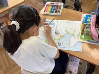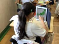 4年生の社会の授業の様子です。静岡県の学習の一環で静岡県の土地のつかわれ方の学習に取り組んでいました。白地図ワークに色付けをして、土地のつかわれ方を探っていきます。気付いたことを記入して、その特徴をつかんでいきます。早く終わった子は都道府県パズルに取り組んでいました。都道府県名を楽しみながら覚えていけるといいですね。