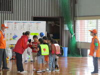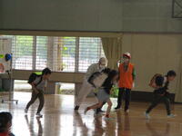 1年生が大切な命を守るための訓練「防犯教室」に参加しました。防犯標語「いかのおすし」の約束を確認し、防犯ブザーの使い方を習った後は、実際にブザーを鳴らし、大声で「助けてー!」と叫ぶ練習や、不審者から逃げる練習を行いました。かけこみ110番の家に駆け込む練習や、大人に逃げてきた事情を報告する練習も経験しました。いざというときには、今日学習したことを役立ててほしいと思います。