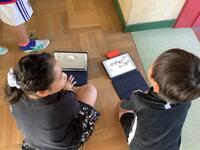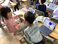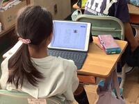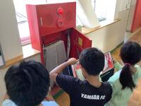3年生の社会の授業の様子です。「火事からくらしを守る」学習の一環で、学校にある火事に備えた設備を調査していました。校内にはどれだけの数の火事に備えた設備があるかを1人1台端末で撮影して記録していきます。防火扉、消火器、消火栓、熱感知器、煙感知器などがどこにあるかを確認していきました。たくさんの設備によって、火事から学校を守るようにしていることに気付いた子供たちでした。