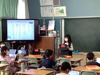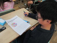3年生の国語の授業の様子です。「ほかのものになりきって」詩をつくり、何のことを書いているのか友だちに当ててもらう発表会を行っていました。子供たちは友達が何のことを書いたのか当てようと夢中になっていました。えんぴつや魚など子供たちの表現した詩は、題を教えられると、「うん、そうだね。」「納得する。」という表現がいっぱいのすてきなものでした。