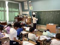 3年生の理科の授業の様子です。「太陽の光を調べよう」という単元の学習で、日なたと日かげの温度の違いを調べていきます。その際に使用するぼう温度計の使い方を確認していました。ぼう温度計の読み方や温度の違いを調べる際のぼう温度計の設置の仕方を確認していきます。しっかりと準備をして、次回の温度の違いを調べる用意ができました。