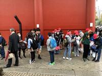 班別学習を終えた子供たちが集合地点に集まって来ました。手にはそれぞれ厳選したお土産をたくさんぶら下げています。おうちに帰ってお土産を披露するのが楽しみな様子です。また、それぞれが見学して感じたことのお話、体験でつくったものとその体験談を、ぜひおうちでもたくさん聞いてください。この後、バスに乗って帰路につきます。