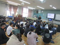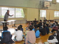 6年生は、キャリア教育として、様々な職業の方にお話を聞きながら、「働くこと」の意義や意味、自分の進路について考えていく学習に取り組んでいます。今日は、お二人の方を講師に招き、子供たちに講話をしていただきました。お一人は、家業の工務店を継ぎ、現在その工務店を経営されている大川さん、もうお一人は、総合格闘技家の遠藤さんです。それぞれ、今の仕事をしてく上で日々大切にされていること、小学生の子供たちに伝えておきたいことを、わかりやすい言葉で、まっすぐに語ってくださいました。子供たちは、職種の違うお二人の話にそれぞれ引き込まれながら、「働くとはどういうことなのか」自分なりの考えを深めていました。