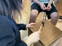 6年生理科で力学を体験しました。材料は、カナヅチと釘です。ここから、てこの原理に入って行きます。