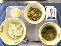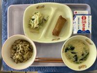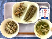 ☆ひじきご飯☆牛乳☆ししゃもフライ☆切り干し大根と豚肉の炒め物☆すまし汁