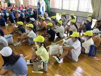 6年生が、社会科の体験学習の一環で、埋蔵文化財センターの方を講師に迎えて、黒曜石のナイフと火おこしの体験に取り組みました。旧石器時代から人類がこの黒曜石を使って様々な道具を作り、生活必需品として使っていました。6年生は、この黒曜石を使って野菜の皮を切る体験を行いました。また、火おこしの道具を使って、火おこしの体験もしました。こうした体験が歴史への興味関心につながっていくことを願っています。