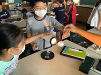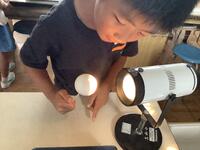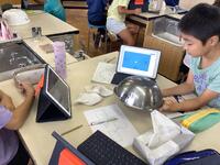 6年生の理科の授業です。球体に光を当てて、月の形の見え方を調べていました。子供たちは、実験をしながら、新月、三日月、半月、満月と手元で変化していく月の様子を確認することができ、「なるほど!」と大いに納得していました。これからは、秋の夜空に美しく輝く月の鑑賞も楽しめそうですね。