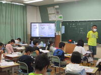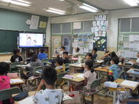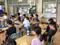 朝、放送で開催した「授業再開の会」では、夏休み前に話をした夏休みの3つの宿題である「夏休みならではのことをやってみること」「家の手伝いを毎日しよう」「授業再開の日に、元気な顔でしっかり登校してくること」について振り返りました。また、1学期終了に向けたまとめや各種行事が今後控えていることから、子供たちが学校の活動や行事で、目標をしっかりともって取り組んでいくことを期待していることを話しました。