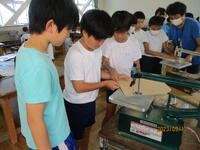 4年生理科でガーゼに含まれた水の蒸発を定量的に電子てんびんで測定しました。