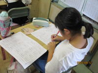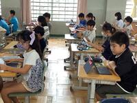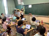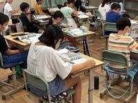 エアコンの不具合の為に、教室外の場所で学習している4年生ですが、いつもとは違う学習環境でも、集中して授業に取り組んでいます。夏休み明け3日目の今日も、友達と仲良く和やかに過ごし、落ち着いて生活する様子に高学年としての頼もしさを感じました。