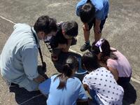 1年生の生活科の授業の様子です。校庭に出て、学校の生きものさがしに取り組みました。見つけた生きものの名前を地図の中に書き込んだり、これから観察するためにケースに入れたりしていました。今日は、昨晩降った雨の影響か、カエルやカタツムリも多く見つけることができました。子供たちは、夢中になってたくさんの生きものを探していました。