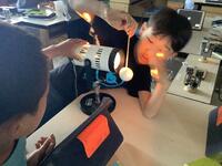 子供たちは、「もっと遠くに飛ばしたいから、袋の大きさを考えてみたい」など、自分の課題を考えて授業に取り組みました。とても生き生きとした表情でレベルアップのための改良に取り組みます。