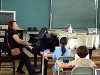 5年生の音楽の授業の様子です。既習の曲を少人数グループごとに歌っていきました。伸びやかできれいな歌声が音楽室に流れていました。また、音符を読んだり書いたりする練習も積み重ね、子供たちはヘ音記号の譜面もスムーズに読めるようになっています。