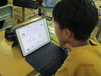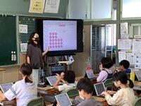 4年生の算数の授業の様子です。「おはじきの数を一つの式に表して、分かりやすく説明してみよう」をめあてに学習に取り組んでいました。子供たちは、1人1台端末のワークシートを使って、おはじきをどこで分割するか考えていきます。その上で計算式を考え、どのように計算したのかを文章で説明していきます。1つ書き終わった子供は、他のやり方でできないか考えていきます。