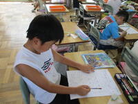 4年生の図画工作の授業の様子です。夏の思い出を題材に絵を描いていました。この夏の思い出が子供たちの心にしっかりと残っているようです。子供たちの思いの詰まった絵画作品に仕上がってきています。