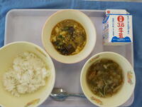 ☆麦入りご飯☆牛乳☆なす入り麻婆豆腐☆もずくスープ