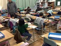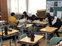 1年生「図工」の様子です。空き箱を利用してのめいろづくりです。どこをスタートにするか、どんな迷路にするか、楽しみながら作っていました。上手にできるでしょうか?
