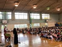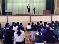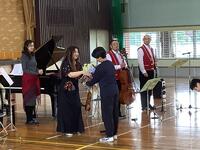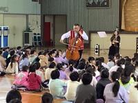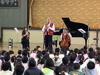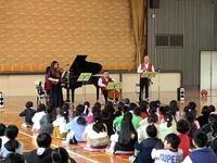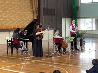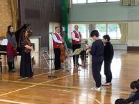 本日、巡回音楽会が行われました。バイオリン、チェロ、クラリネット、ピアノの4つの楽器からなる演奏です。生で聴く演奏は迫力がありました。また、知っている曲が演奏されると子供たちは自然と笑顔に。生の演奏による校歌の合唱も行いました。とても素敵な演奏会となりました。最後、聴く姿が素敵でした、と演奏者の方々からうれしい言葉もいただきました。