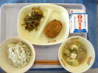 ☆麦入りご飯☆牛乳☆みしまコロッケ☆茎わかめのきんぴら☆とんじる