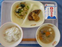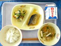 ☆麦入りご飯☆牛乳☆鯖の味噌煮☆ごま和え☆沢煮椀