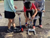 4年生の理科の授業で、改良した水ロケットを飛ばす実験を行っていました。子供たちは、「ずごい!こんなに飛ぶようになったよ!」と大興奮です。ペットボトルの中に入れる水の量にもこだわり、空気の力を最大限生かすための方法を模索していました。思い通りの飛距離が出せ、歓声を上げて喜んでいました。