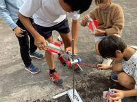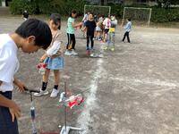 4年生理科で前時に製作した改造ロケットを発射しました。