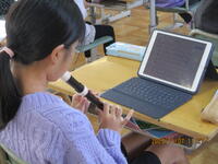 音楽室から、きれいなリコーダーの音色が聞こえてきました。4年生が「オーラリー」を演奏していました。高音部の音もきれいに出せるようになり、みんなでテンポを合わせ、演奏を楽しんでいました。