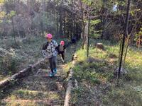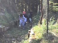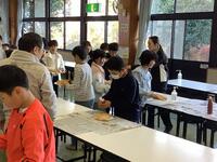 朝食後、「自然観察活動」です。ネイチャーゲームを行いました。封筒に入っている植物と同じ植物を見つけます。今回は檜の木の皮とヤマイモの葉です。班で協力しながら、見つけることができました。ゲームを楽しみながら、自然観察です。