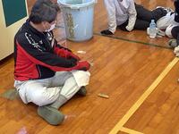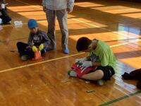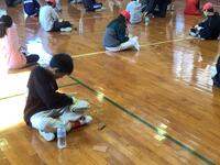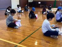 1年生、体育の様子です。体育館でなわとびを行っていました。前とび、後ろとび、ケンケンとび、グーパーとび等々、いろいろな跳び方に挑戦していました。先生から「つま先で軽やかにジャンプする」というコツを教えてもらうと、とても上手にとべるようになりました。
