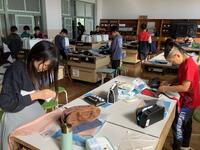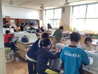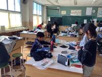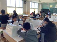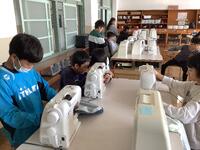5年生、家庭科の様子です。ミシンやアイロンを使ってエプロン作りをしていました。裁断→縫いしろのアイロンがけ→ミシン縫いという手順を確認し、友達と協力したり教え合ったりして進めていました。