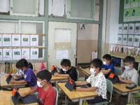 2年生の書写では、よりよい文字を書こうと集中して取り組む姿が見られます。お手本をじっくり見ながら、一画ずつ丁寧に取り組んでいます。満足のいく文字が書けるととても嬉しそうな子供たちです。
