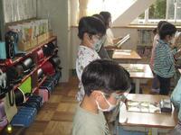 2年生音楽の授業の様子です。「さんぽ」「子犬のビンゴ」を音楽に合わせて楽しく歌っています。マスクとフェイスイールドを着けながら感染対策にも気を付けています。