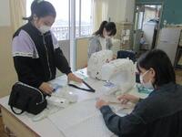 6年生家庭科の授業の様子です。修学旅行に持っていくナップサックをミシンで製作しています。今日はひもを通す出し入れ口を輪になるように縫っています。ミシンの使い方に慣れている6年生は仕上がりも完璧なようです。