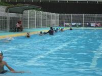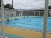 1年生体育の授業では、水中を歩いたり、走ったり、潜ったりしながら進んでいます。水にもだいぶ慣れてきた様子が見られます。曇りの天気ですが、気温も水温も水泳には快適な環境状況です。