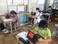 1年生算数の授業は、繰り下がりのある引き算の30問テストをメタモジ上で行っています。今までの学習を生かして、頭の中で素早く計算して答えを導き出していました。メタモジの操作も完璧です。