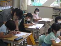 1年生国語の授業の様子です。平仮名の練習もいよいよ追い込みです。今日は「わ」の練習です。ゆっくり丁寧に大きく書けました。そして、「わ」のつく「わなげ」「わたがし」「わんちゃん」など、たくさんの言葉を見付けました。
