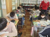 5年生社会の授業の様子です。多くの島からなる日本には東西南北の一番端にある島があります。地図や資料集を見ながら4つの島の名称と場所を確認しています。