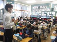 6年生算数の授業は、大小に差がある同じ形の性質や描き方についての学習です。大きさに差がある2つの図形が同じ形であることをどのように証明するかを追究しています。これから拡大図や縮図の問題に取り組んでいきます。