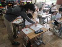 1年生算数の授業の様子です。絵や図形を見てすぐに数を数えることができるようになりました。書き順を間違えずにしっかりと数字を書き込んでいます。