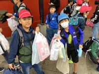 班別学習を終えた子供たちが集合地点に集まって来ました。手にはそれぞれ厳選したお土産をたくさんぶら下げています。おうちに帰ってお土産を披露するのが楽しみな様子です。また、それぞれが見学して感じたことのお話、体験でつくったものとその体験談を、ぜひおうちでもたくさん聞いてください。この後、バスに乗って帰路につきます。